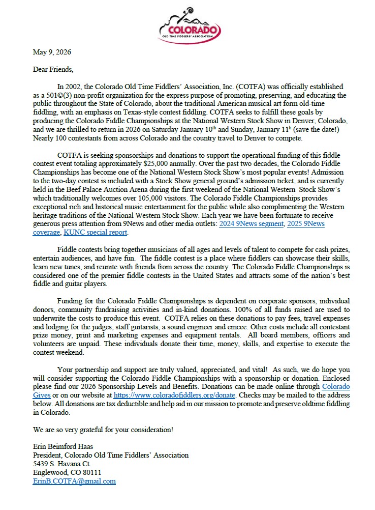 We have so many sponsorship packages to choose from to support the Colorado Fiddle Championships.